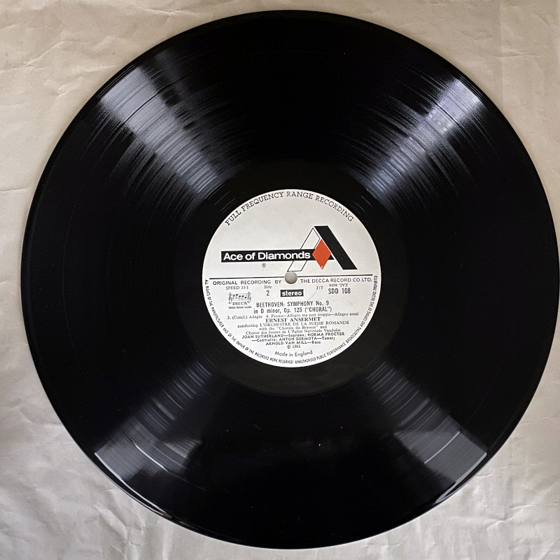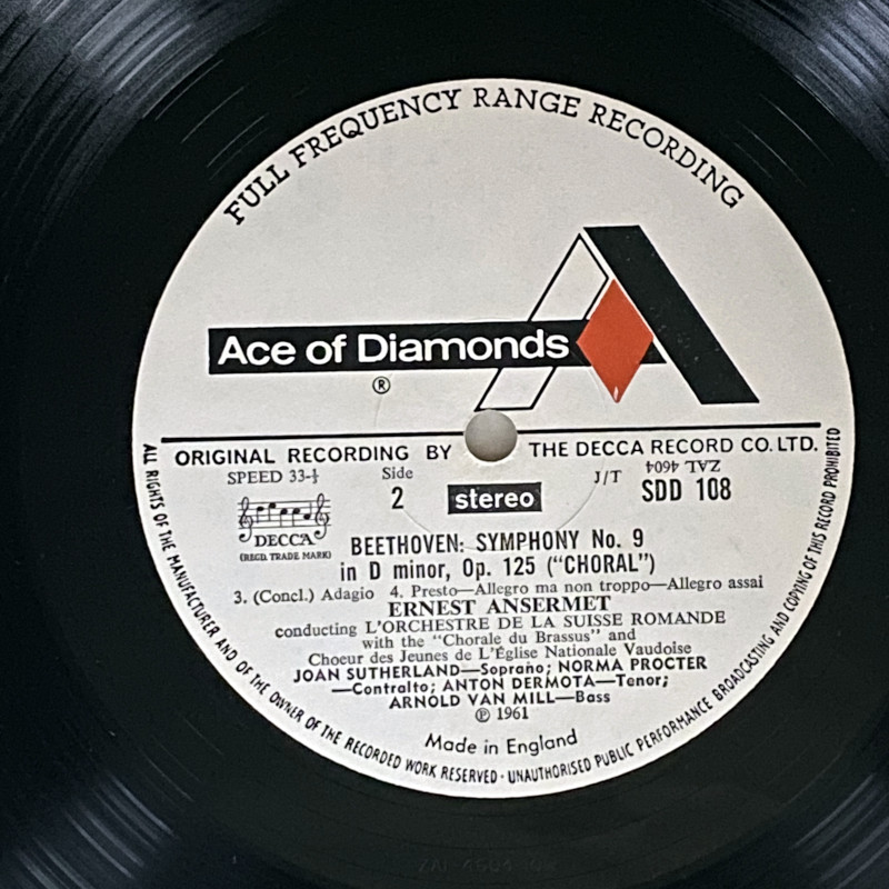 「Ace of Diamonds」は、英デッカが1965年から展開した廉価盤(ミッド・プライス)シリーズです。廉価盤とはいえ、初期のプレス(深溝、ラベル上部にFULL FREQUENCY RANGE RECORDING文字入りのものなど)は、オリジナルのSXL盤と同じスタンパーが使用されているケースもあり、オリジナル盤に肉薄する圧倒的な音質を誇ることでオーディオファンから絶大な信頼を得ています。