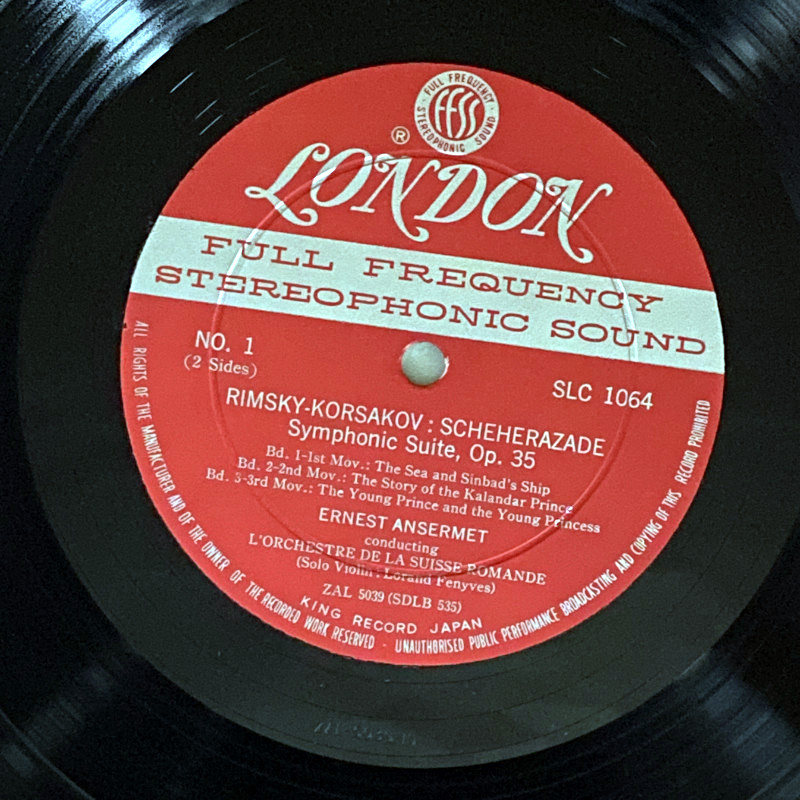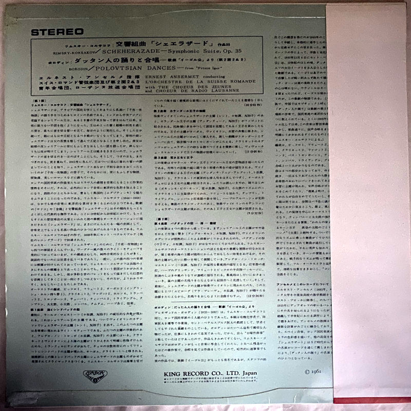 アンセルメの代表的な名盤「シェエラザード」の国内最初期盤帯付き希少盤です。