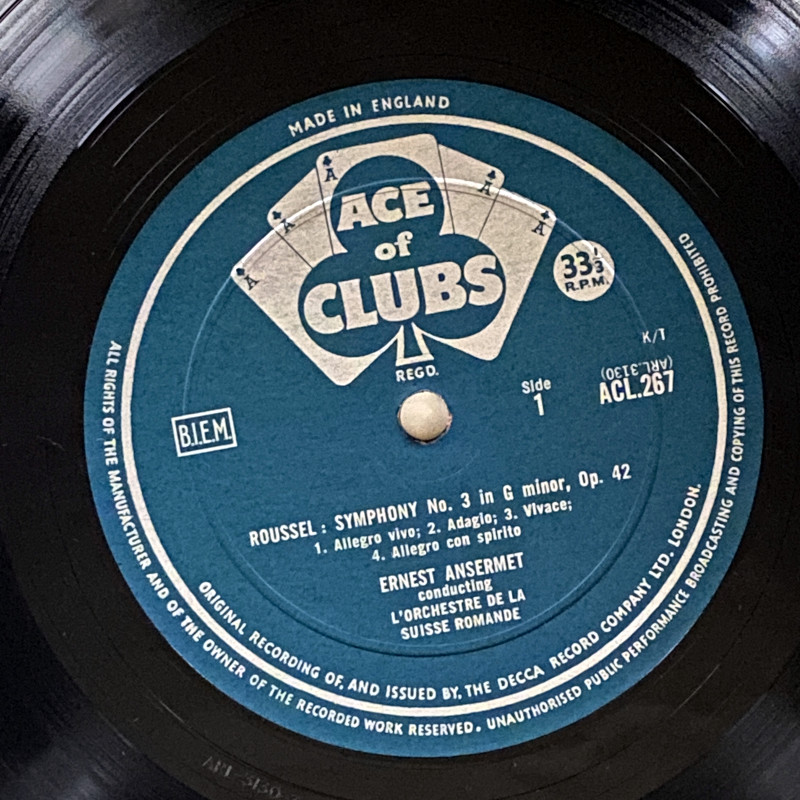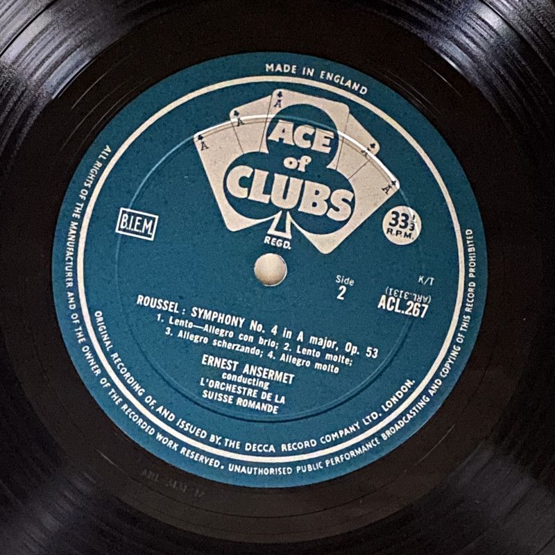 [USED LP] アンセルメ/スイス・ロマンドO ルーセル 交響曲 第3番、第4番 DECCA ACE of CLUBS ACL267  深溝重量MONO盤