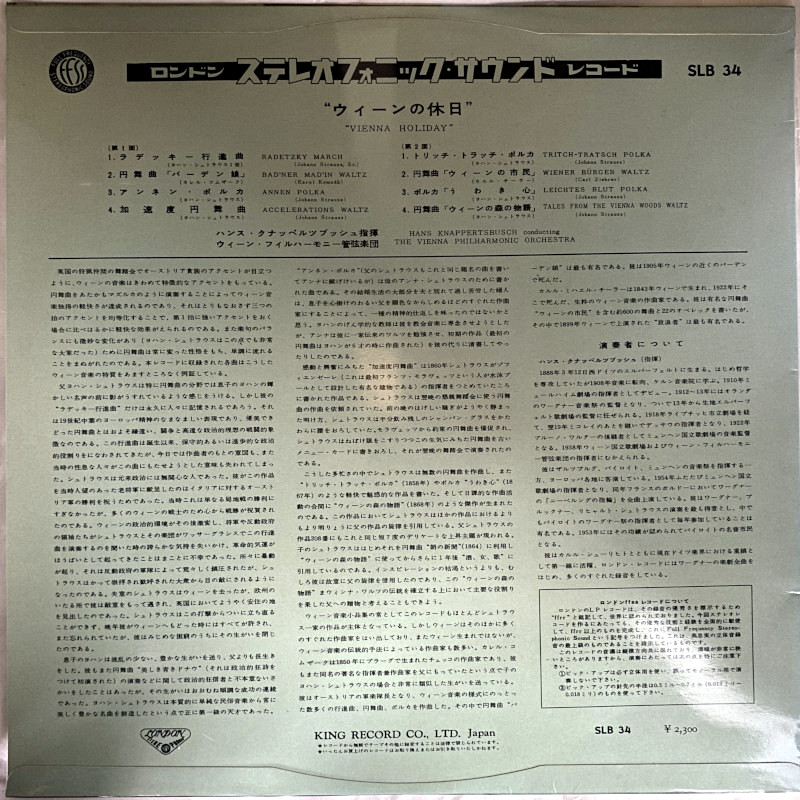 [USED LP] クナッパーツブッシュ/ウィーン・フィルハーモニーO ウィーンの休日 LONDON WB SLB34 国内最初期盤 深溝フラット盤 希少