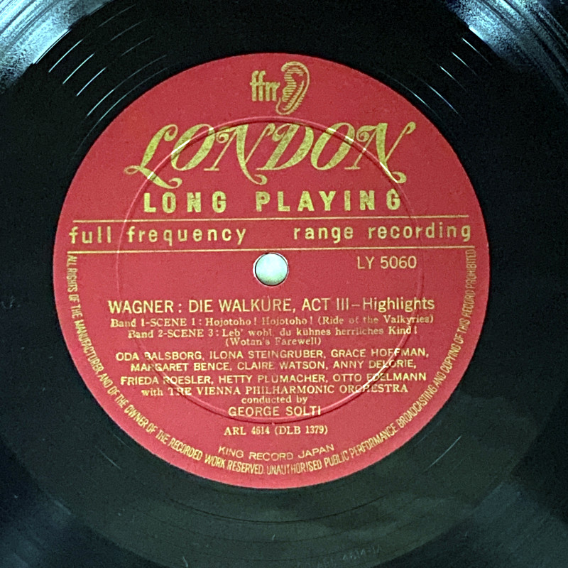 [USED LP] ショルティ/ウィーン・フィルハーモニーO ワーグナー:楽劇「ラインの黄金」「ワルキューレ」ハイライト LONDON LY 5060 モノラル国内最初期盤 深溝盤