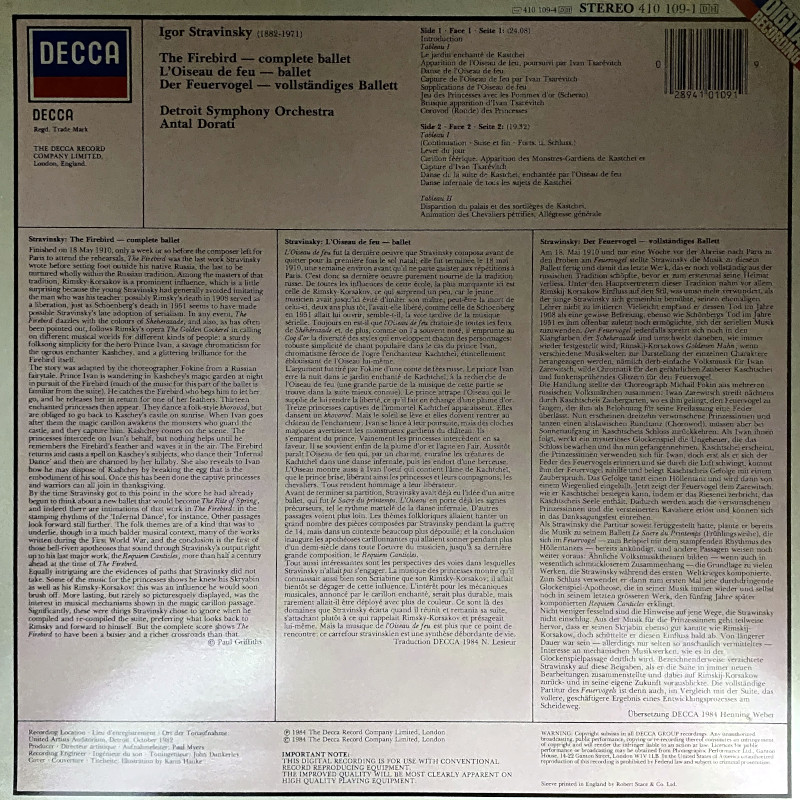1980年代初頭のDECCAデジタル録音を代表する名盤のひとつです。ドラティによる精緻極まるタクトと、デトロイト交響楽団の機能美、そしてDECCAの誇るデジタル技術が見事に融合した超名盤。