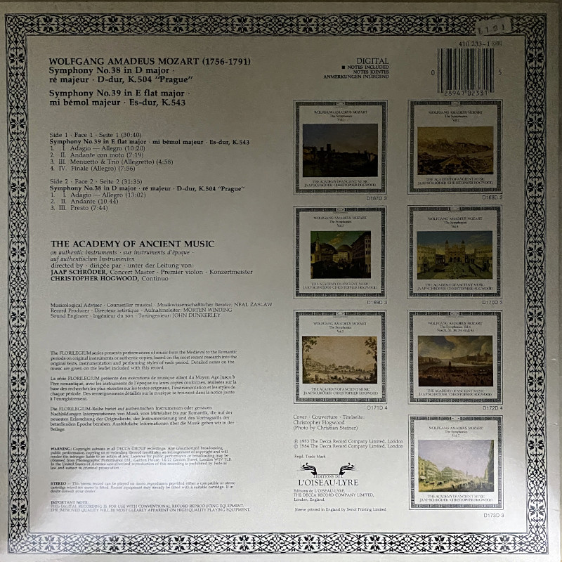 この録音は、ホグウッドとエンシェント室内管弦楽団(AAM)が1970年代末から80年代にかけて成し遂げた、モーツァルト交響曲全集という歴史的プロジェクトの一部です。